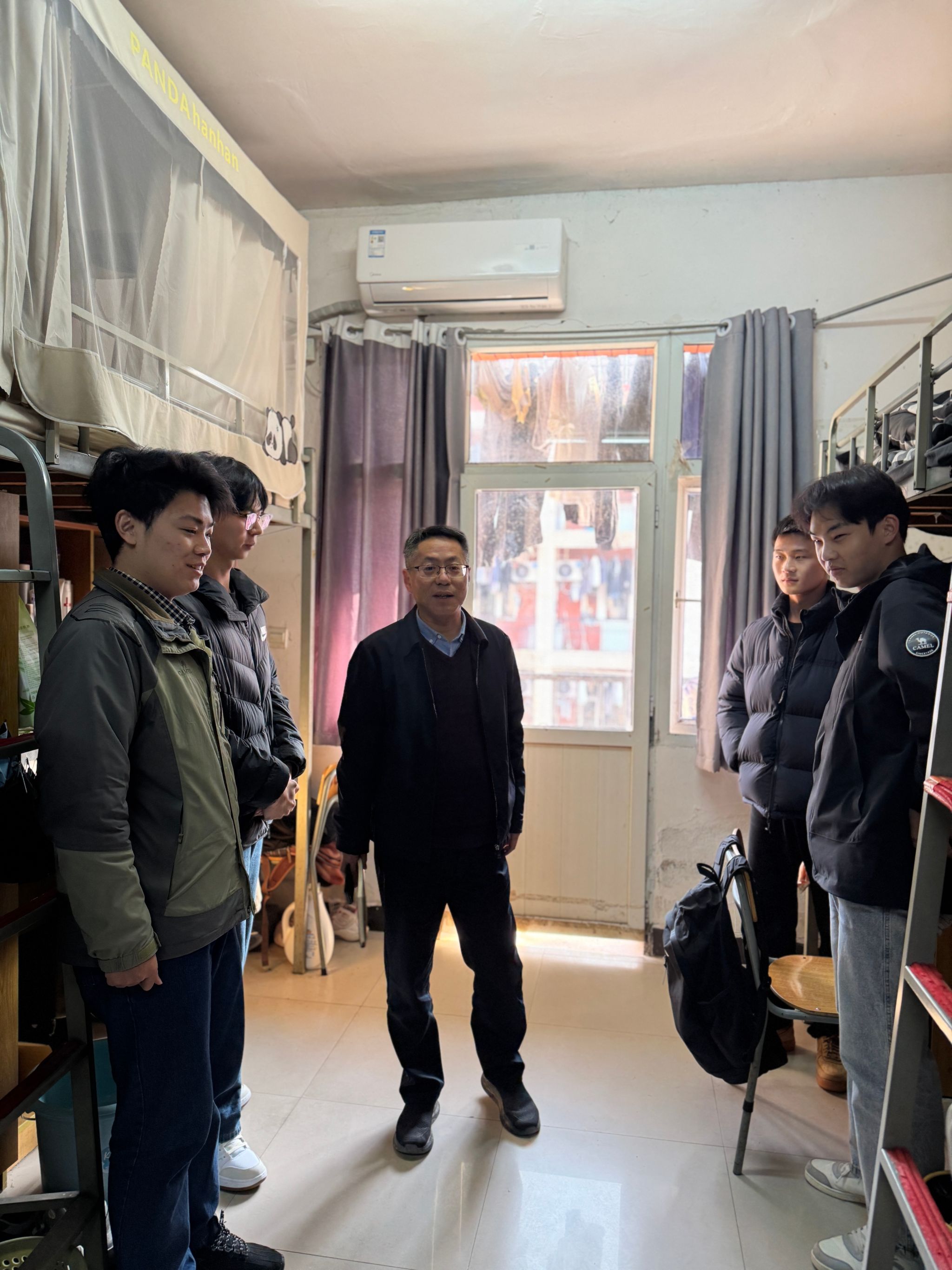 座谈会后,周书民副校长深入学生宿舍,实地察看同学们的住宿环境,了解大家的生活状况,将学校的温暖与问候带到同学们身边。学校将持续关注学生需求,不断优化育人环境与服务保障,助力每一位学子健康成长、成才圆梦。