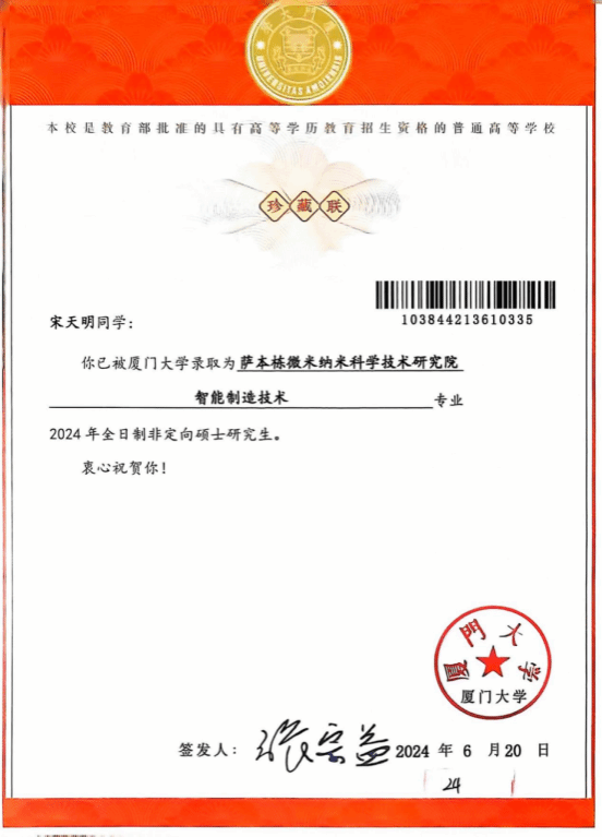 43 | 2001232031 | 宋天明 | 男 | 电气工程及其自动化 | 20电气2班 | 18079342703 | 厦门大学 | 智能制造技术 | 985 | 是 | 是 |