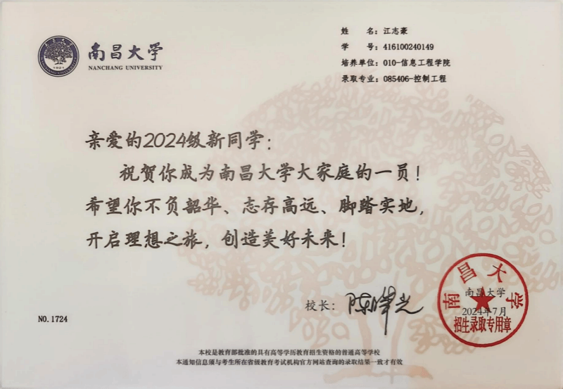 51 | 2001251043 | 钟裔良 | 男 | 机器人工程 | 20机器人1班 | 15779023550 | 南昌大学 | 控制工程 | 211 | 是 | 否 |