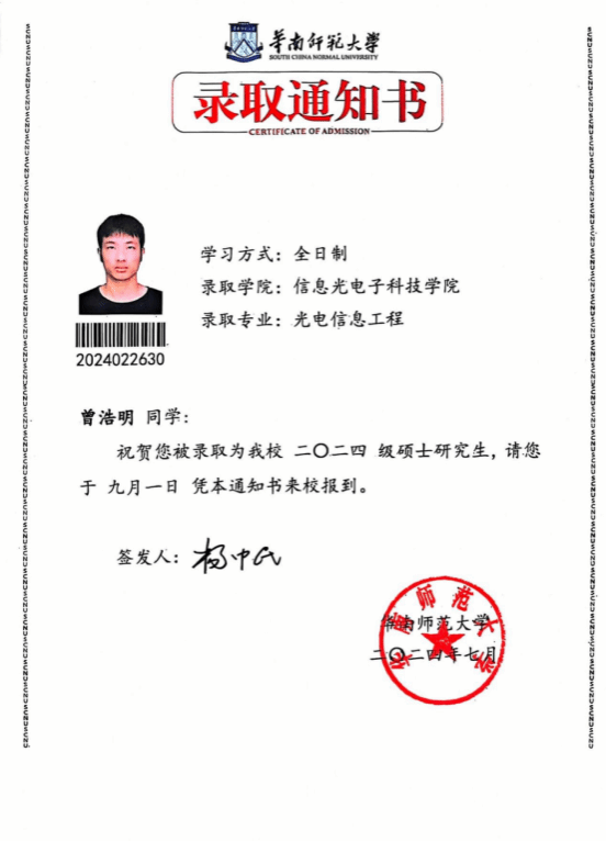 49 | 2001251039 | 曾浩明 | 男 | 机器人工程 | 20机器人1班 | 15779088487 | 华南师范大学 | 光电信息工程 | 211 | 是 | 否 |
