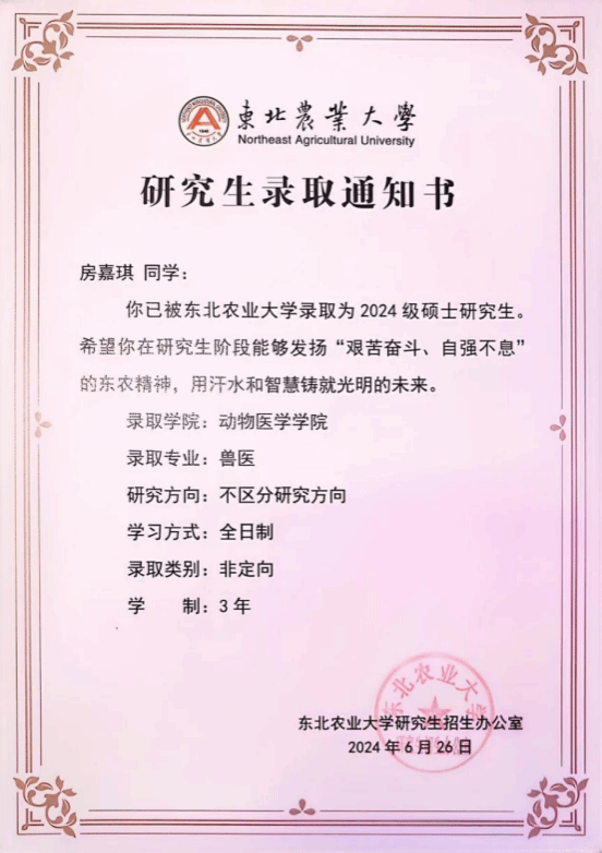 1 | 2001241005 | 房嘉琪 | 男 | 材料成型及控制工程 | 20材料1班 | 18647650516 | 东北农业大学 | 兽医 | 211 | 是 | 是 |