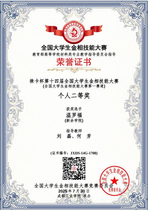 2025 | 第十四届 | 个人二等奖 | 温罗福 | 23级材料成型及控制工程 |