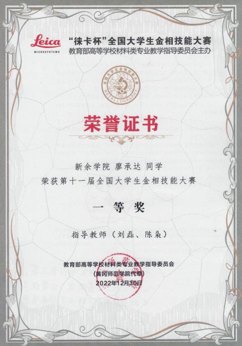 团队以竞赛要求为指导,锻炼学生金相试样制备方面的动手操作能力,夯实学生的材料学科基础理论知识,培养学生的团队合作精神,“以赛代练”,全面提升学生的专业技能、工匠精神、艺术审美和科学素养。本团队自第六届大赛首次参赛以来,已获得全国一等奖5项、二等奖7项、三等奖19项,团体三等奖3项,在608所高校中排名第155位,取得了不错的成绩。