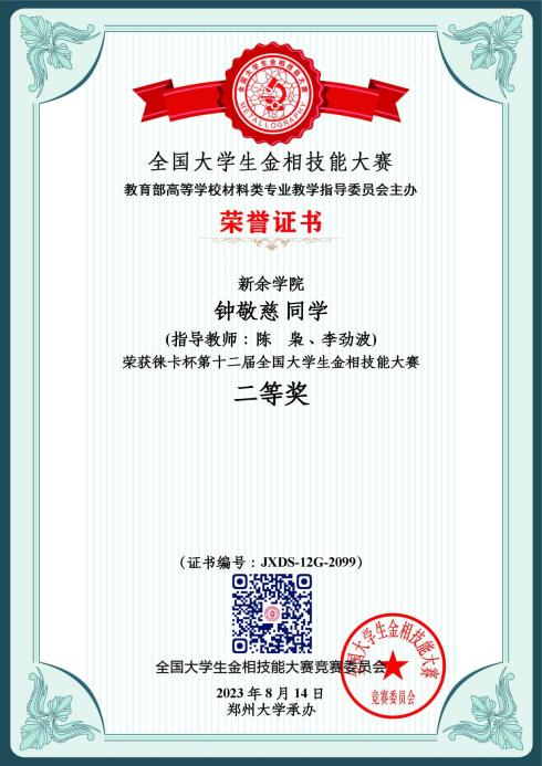 2023 | 第十二届 | 个人二等奖 | 钟敬慈 | 22级材料成型及控制工程 |