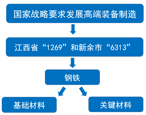钢铁产业是新余市优先发展的支柱产业,也是省“1269”和市“6313”计划中的重点发展产业。新钢集团年产60万吨优特带钢,另外新余市还有13家优特带钢深加工企业,年产40万吨深加工高附加值优特带钢产品,形成了优特带钢产业集群。