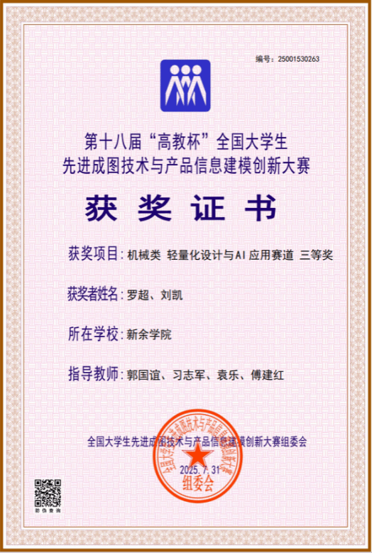 2025 | 全国大学生先进成图技术与产品信息建模创新大赛 | 增材制造赛道 | 省级三等奖 |