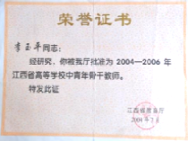 图13 江西省金牌教师、江西省新时代学生心中的好老师和江西省中青年骨干教师荣誉证书