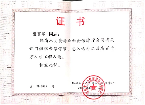 图11 国家百千万人才工程人选和江西省井冈学者特聘教授证书