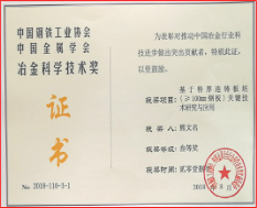 图9 与新余钢铁集团合作申报江西省重大科技研发专项,获得江西省科学技术进步二等奖1项、冶金科学技术奖三等奖1项